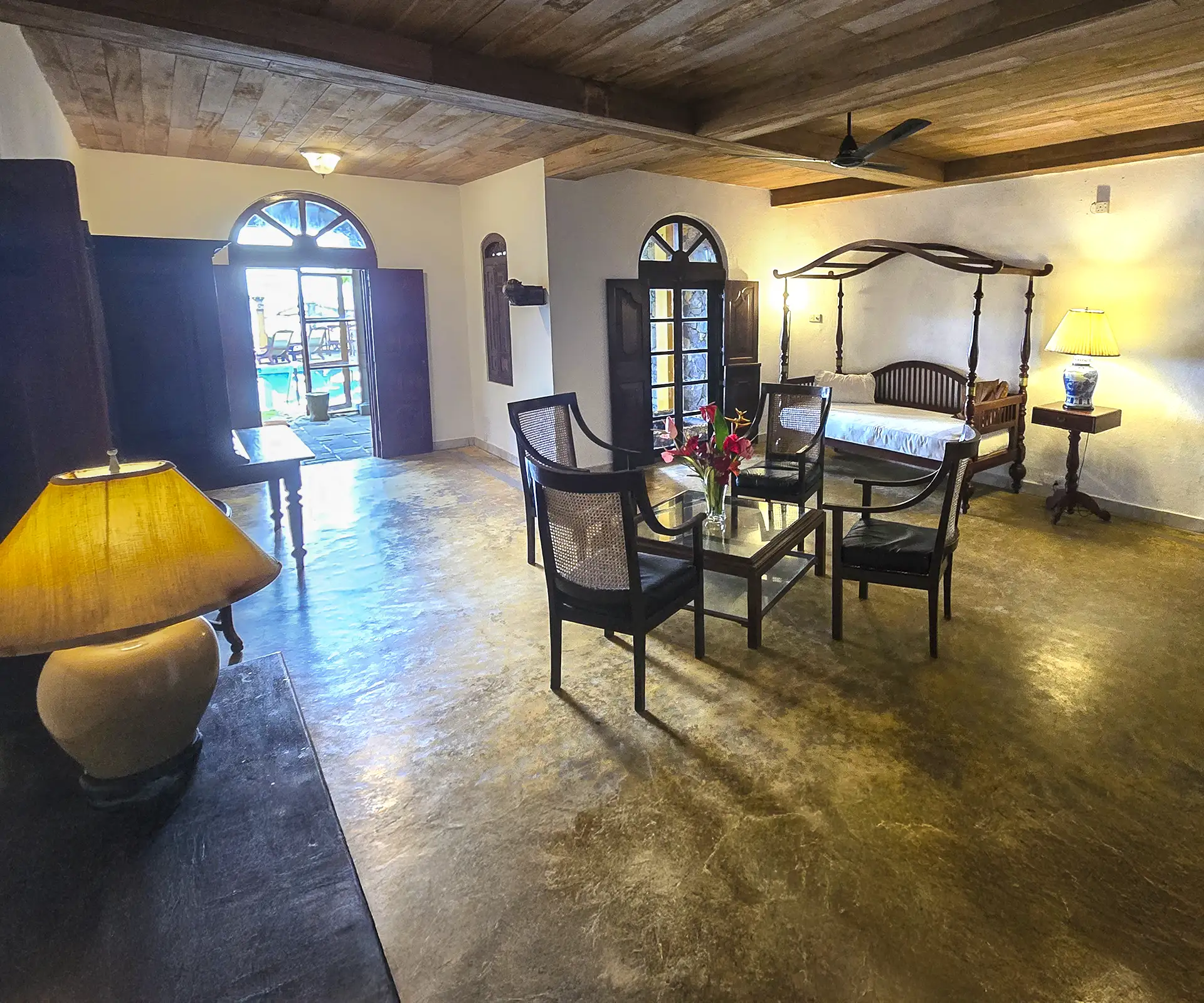Immerse yourself in the captivating atmosphere of 1930s Sri Lanka. Villa Kusum, a historic beachfront residence in Hikkaduwa, blends the authenticity of preserved architectural heritage with modern refinement.